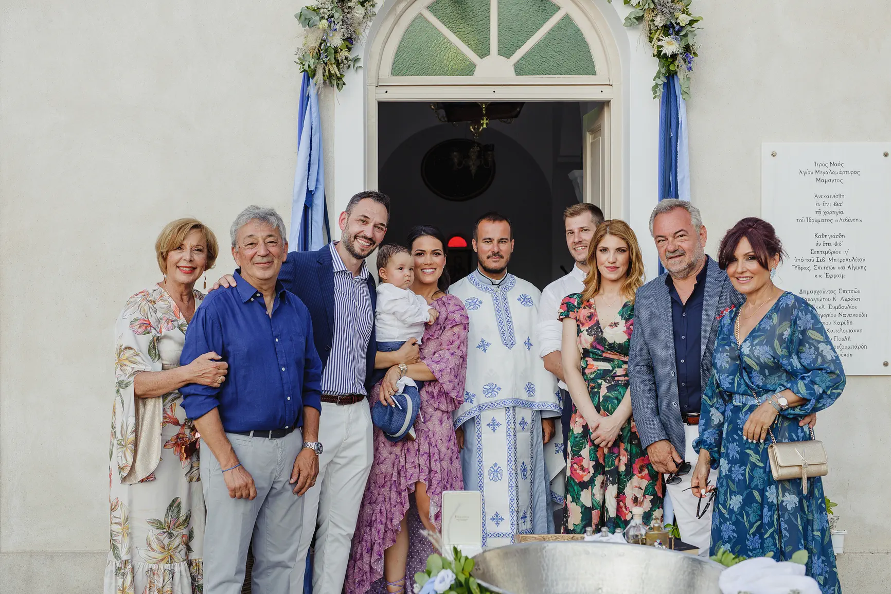 The christening of little Lambros in cosmopolitan Spetses was a celebration that perfectly balanced between solemn emotion and frenetic joy, reflecting the unique aura of the island. The day began with a tender perspective: a beautiful pre-ceremony photo shoot that captured Lambros’ innocence and the family’s love against the backdrop of the picturesque alleys or beautiful corners of Spetses, building anticipation for what was to come.