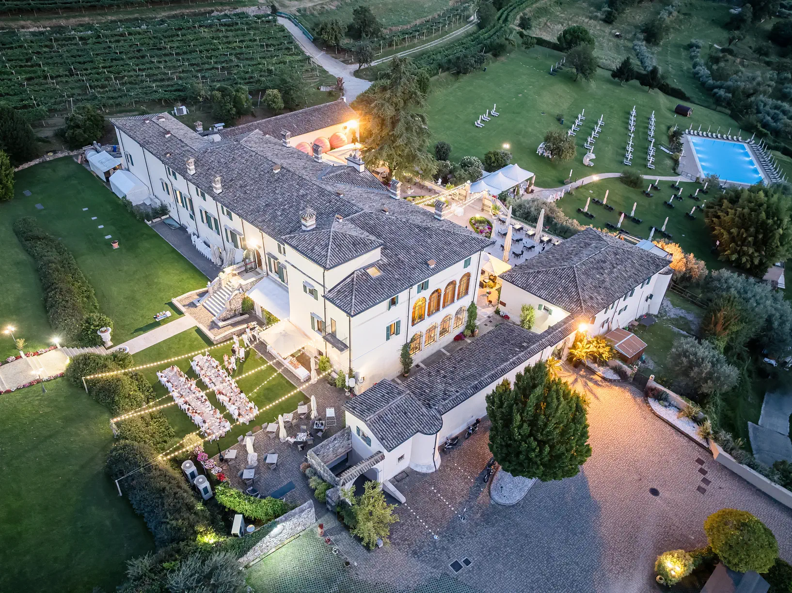 Η Villa Cariola, σε κοντινή τοποθεσία στην ειδυλλιακή Λίμνη Garda, αποτέλεσε το ιδανικό σκηνικό. Η αρχιτεκτονική, το φυσικό φως και οι ανοιχτοί χώροι της βίλας δημιούργησαν ένα περιβάλλον όπου κάθε στιγμή μπορούσε να γίνει φωτογραφία. Λίγες ώρες πριν από τη μεγάλη ημέρα, το ζευγάρι είχε οργανώσει ένα γαμήλιο pre–wedding πάρτι, γεμάτο γέλιο, μουσική και χαλαρή ατμόσφαιρα. Δύο άνθρωποι που ήθελαν να μοιραστούν τη χαρά τους με όλους όσους αγαπούν.